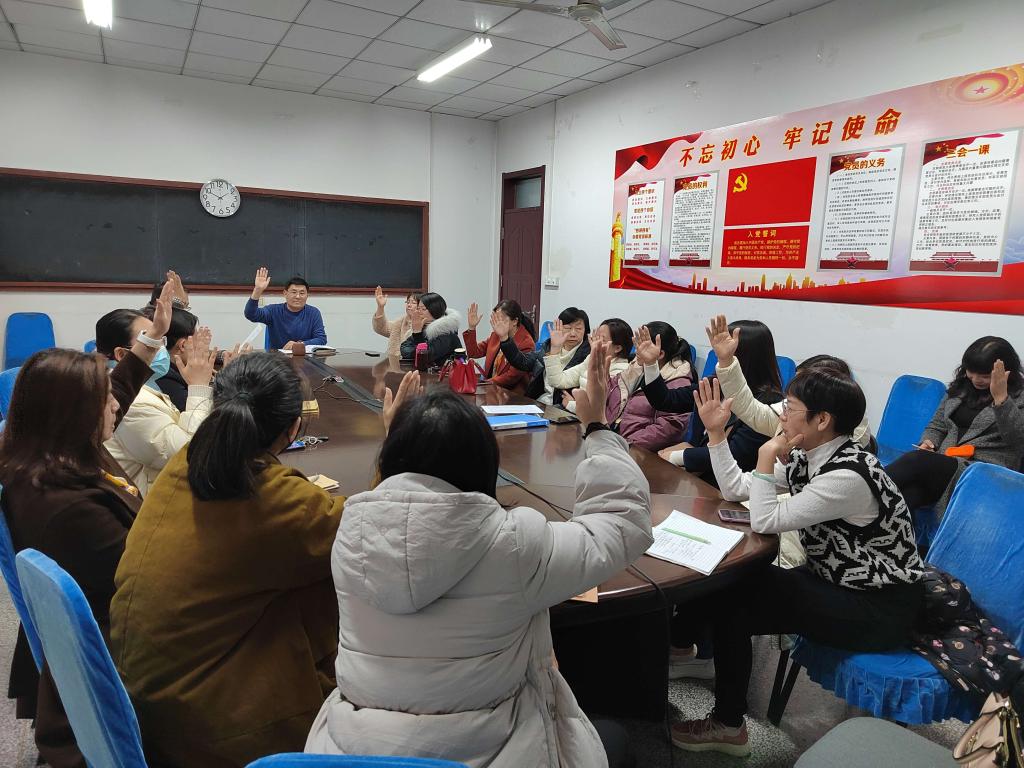 副书记刘成干公布了党的十九届六中全会精神学习方案。要通过“党课”集中学、个人自主学及撰写心得体会等形式,对全会精神进行全方位宣传、多角度阐释、深层次解读,迅速形成规模、形成气势,大力营造学习宣传贯彻全会精神的浓厚氛围,深刻领会精神实质,精准把握核心要义,切实增强学习实效。他强调,要把学习全会精神作为党员思想政治教育和课堂教学的重要内容,将党的十九届六中全会精神融入课程思政。