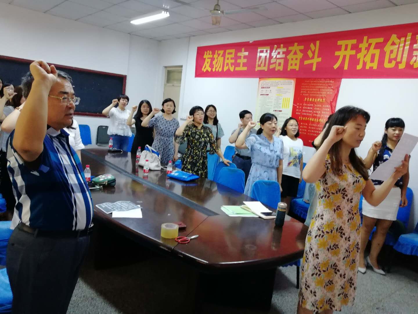活动首先进行重温入党誓词,刘成干同志带领全体党员朗读入党誓词,全体党员同志庄严肃穆宣誓,坚定理想信念,不忘入党初心。入党誓词是座右铭,更是行动指南。通过开展重温入党誓词的活动,让党员们进一步端正思想态度,纯洁入党动机,在工作生活中发挥先锋模范作用,以实际行动践行党员的职责、为党旗增光添彩。结合教学工作实际,强化党员的党性和观念。尽心尽职,勇于担当,做好本职工作。