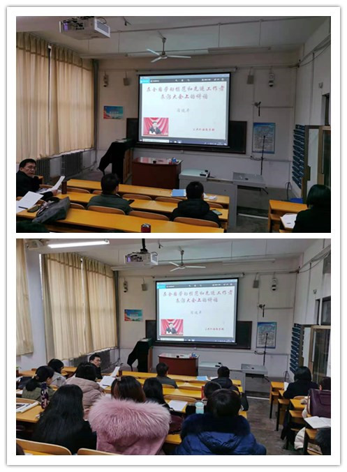 全体教职工共42人在部领导和工会主席的带领下,在阶梯教室开展了学习《习近平总书记在全国劳动模范和先进工作者表彰大会上的讲话》的专题活动。