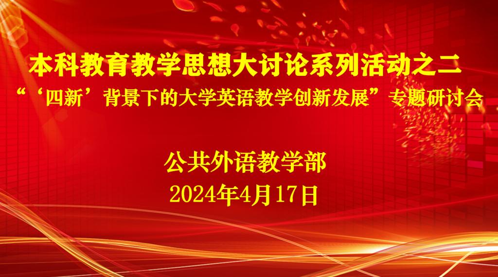 召开本科教育教学思想大讨论系列活动之二——“‘四新’背景下的大学英语教学创新发展”专题研讨会。研讨会由番号鸽