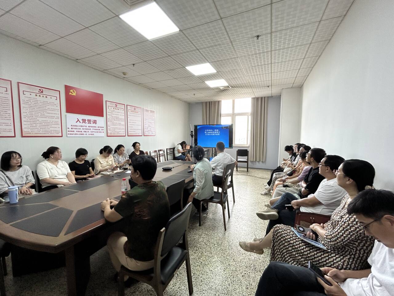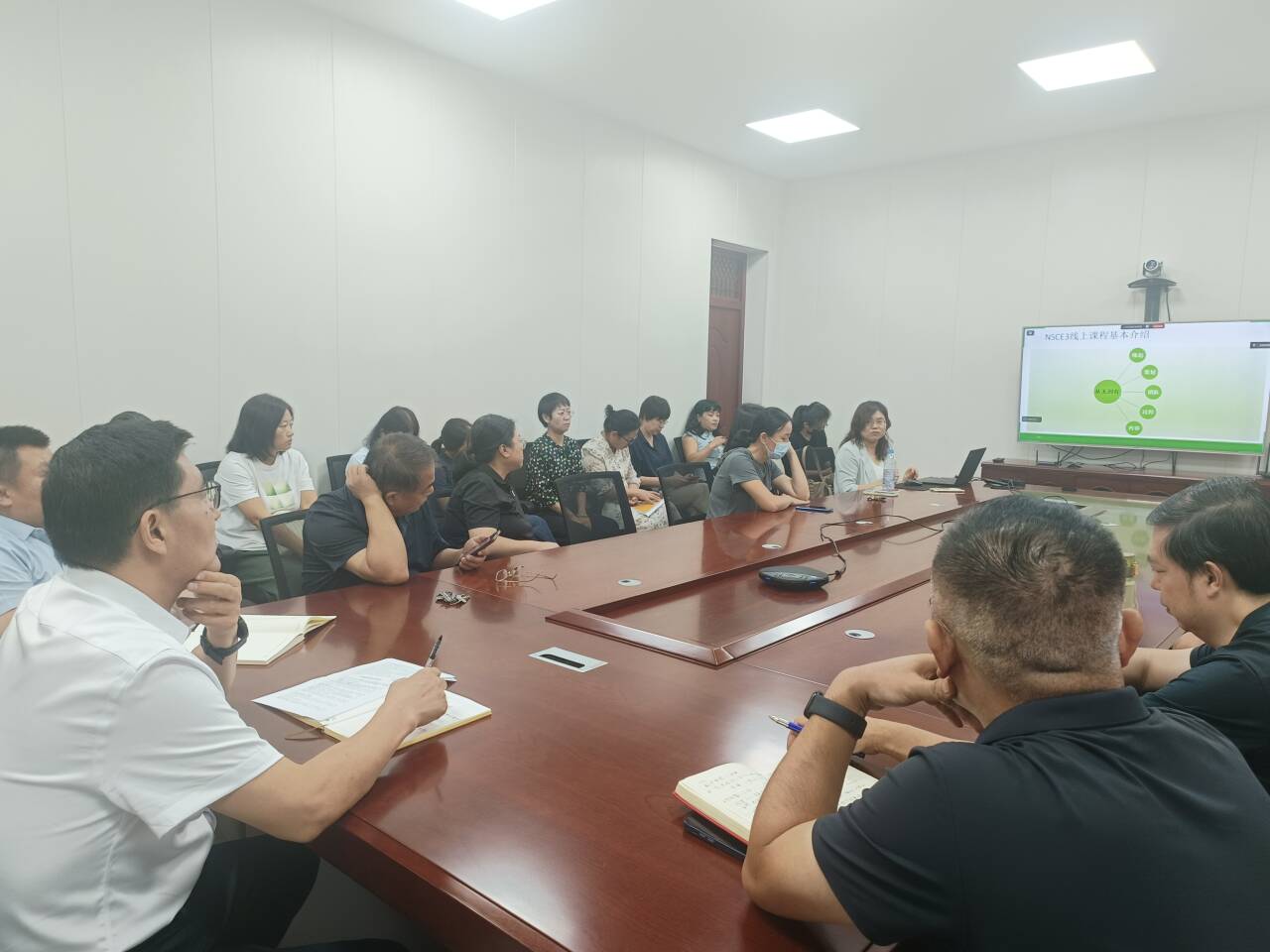 召开“大学英语混合式教学改革及课程建设推进会”,以提升教学质量与学生综合语言应用能力。课程建设团队负责人聂新艳、杜明真两位老师分别就单位建设完成的四门在线课程进行详细解读,为后续教学实践与课程优化指明方向。