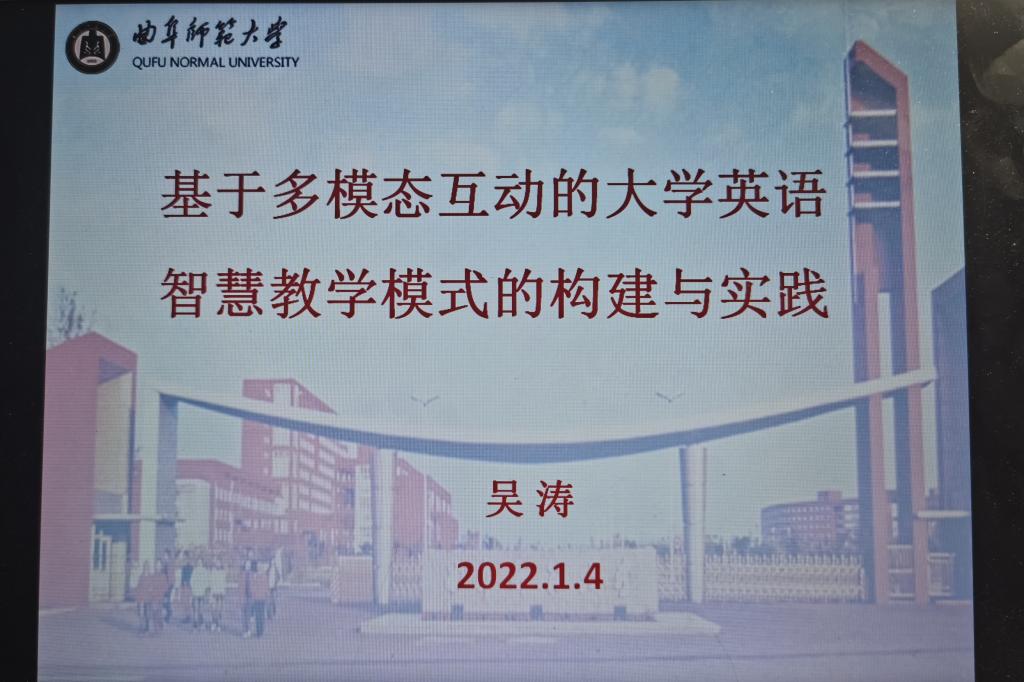 举办大学英语教学研究沙龙,本次活动通过视频会议形式在两校区同步进行。本期教学研究沙龙共有4个主题,分别由孙海珊、董伟、吴涛、衣进韬等4位老师就各自的业务专长及其近期取得的成果做了汇报与展示,此次沙龙由基础教研室(日照校区)主任张英主持。