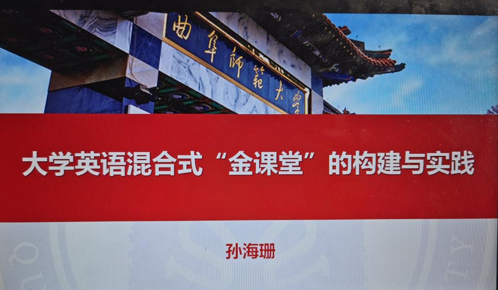 孙海珊结合自身教学比赛的实战经验,以《大学英语混合式“金课堂”的构建与实践》为主题,系统阐释了“金课堂”建设的基本原则,着力强调优化课程顶层设计,引领多维育人目标互动协同,合理整合教学素材,关照多维能力融合发展,精心规划教学过程,落实多维能力全过程培养。