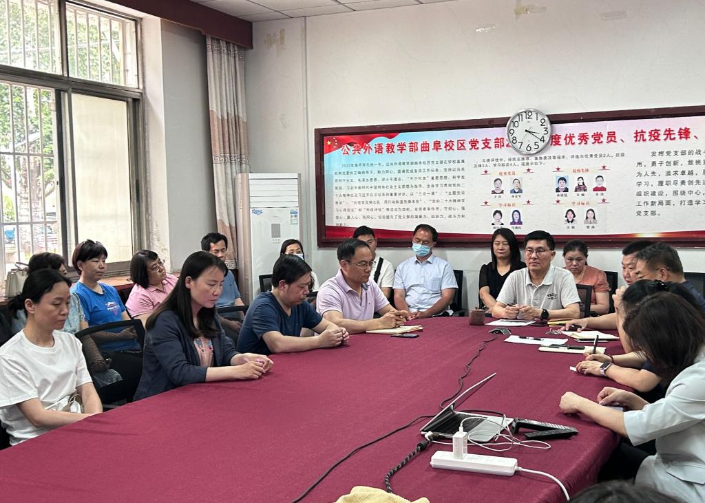 工作实际进行了交流发言。大家都普遍认为,作为高校教育工作者,要将讲话精神落实到具体本职工作中去,要勇于打破陈规,创新教育理念和教学方法,培养更多适应中国式现代化需要的高素质人才。作为承担全校本科生通识教育主干课程大学英语和研究生公共英语课程的教学团队,每一位老师都要深入落实立德树人根本任务,强调内涵建设,彰显文化自信;以学生为中心,突出教学为中心地位;敢于创新,积极拓展,努力打造“有活力,谋进取”的公共外语教学特色。