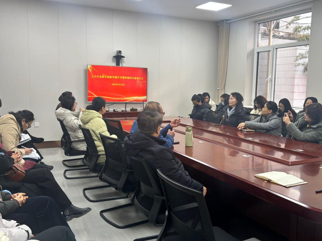 新学期思想政治理论学习、师德师风建设、意识形态管控等方面任务作了深入分析和总体部署,他强调在新学期要持续加强全体教师意识形态教育,树牢意识形态红线底线意识,深入开展师德师风建设主题教育活动,切实提升全体教师“为党育人,为国育才”使命感与责任感,增强全体教师为国弘文的荣誉感,形成甘于奉献、风清气正、乐教爱生的良好师德师风新风尚;他要求全体任课教师在日常教学工作中要时刻拉直绷紧意识形态红线,立师表,铸师魂,强化课堂管理,规范师生交往,弘扬主旋律,传递正能量。此外,结合新学期教学科研等各项重点工作,他要求全体教师要高度重视课堂教学工作,精益求精,求真务实,切实提升我校大学英语课程教学质量,扎扎实实为我校人才培养工作做好基础性支撑工作;在此基础上,切实加大科研攻关力度,认真组织好各类重点课题申报工作,积极参加各类学术会议,培育更多高层次成果,实现高质量发展。